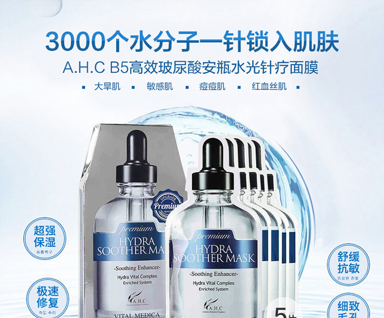 AHC第4代B5玻尿酸三部曲面膜补水抗皱 2016新品 -5片