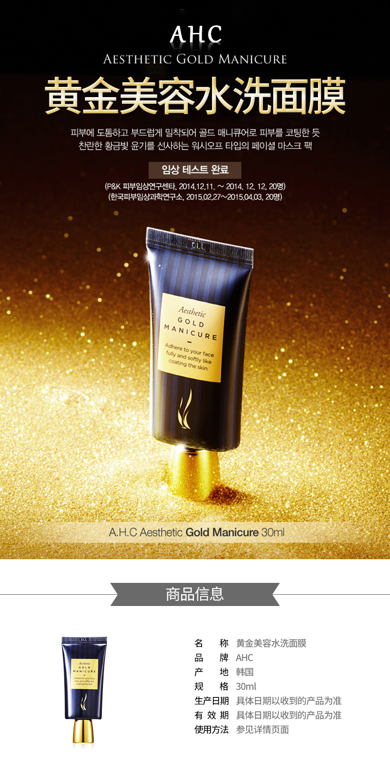 AHC帶你走向潮流的尖端,24k黃金錫紙修復面膜,讓你平民價體驗美容院也可在家享受的新體驗,ahc一貫作風,華麗氣質,皇者風範,使用24克拉黃金和膠體金,以幫助提升緊致,潤澤平滑肌膚,賦予你華丽的光芒,面膜中的勞斯萊斯,一盒面膜,青春回復,土豪材料,平民價格,你的明智之選。