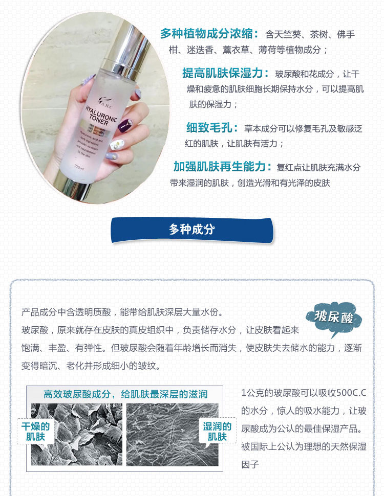 使皮肤内吸收并储藏本身重量的1000倍的水分,唤醒细胞再生机能,重现修复皮肤枯萎断裂的细胞,在短时间内重塑紧致平滑富有弹性的肌肤。