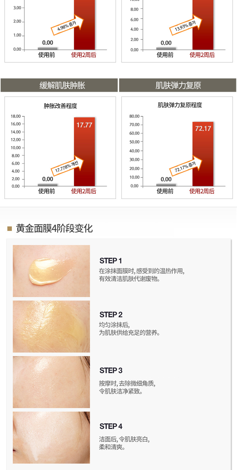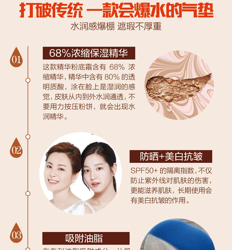 在韩国最权威电视购物频道“乐天电视购物”创40分钟全部售磬,一分钟934个的销售记录, 涂抹后立即改善肌肤亮度, 深层瓦解黑色素达到祛斑的效果, 有效缓解紫外线造成的红肿, 120小时持续保湿, 美白抗皱双重认证的功能性产品