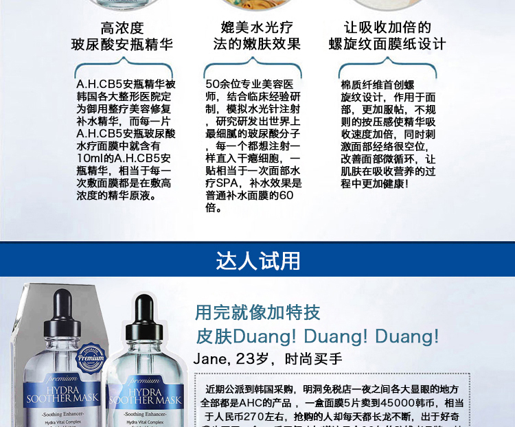 都知道AHC最大特点 产品刺激小,柔和,效果好,连敏感肌和孕妇都可以使用!