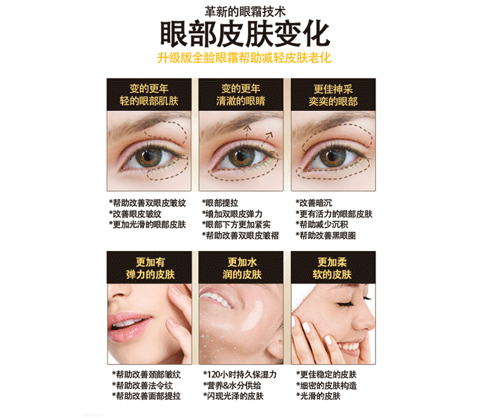 4代眼霜10ML:增强了抗老化滋润抗皱功效,含有15%的NMF保湿因子,没有皮肤使用限制,干性皮肤觉得足够保湿,油性皮肤也不会觉得油腻