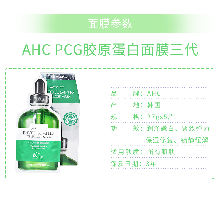 AHC第三代高浓度胶原蛋白面膜 美白弹力补水紧肤修复 -5片