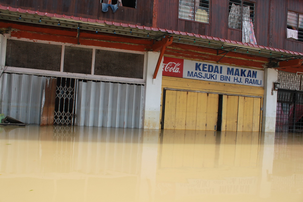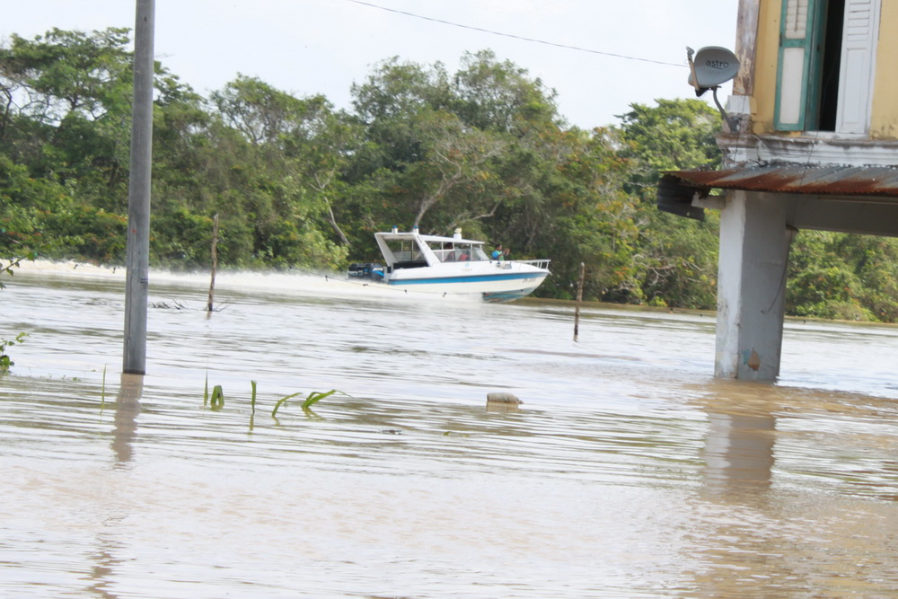 | 政府快艇快速行驶引起的波浪冲击班卒镇的店屋,导致屋门敞开, 玻璃劈裂 |