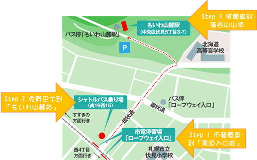 Step 2轉搭乘免費巴士到「もいわ山麓站」