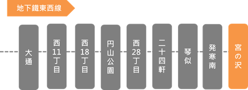 搭乘方式:搭乘地下鐵東西線到「宮之澤站」後,徒步約7分鐘