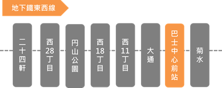 搭乘方式:搭乘地下鐵東西線到「巴士中心前站」