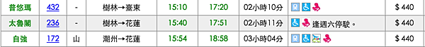 火車: 台北火車站 ←→ 花蓮火車站 約3小時
