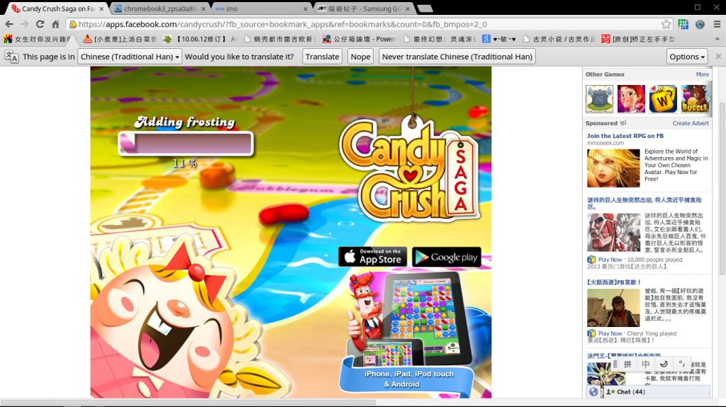 然后我也试着开了fb的游戏,貌似也可以正常运行~ 目前还没试过那些画面很好,对显卡有要求的游戏~ 毕竟这架机是没有显卡,所以就不试了~
