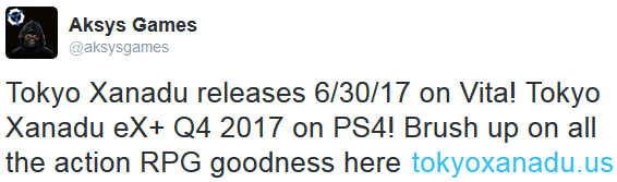 Tokyo Xanadu for PS Vita Launches June 30, Tokyo Xanadu eX+ for PS4 & PC this Fall