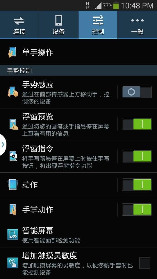 设置界面有着手势感应器和银幕感应器等。。。这些都是卖点之一哦。。。