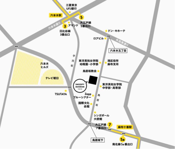 換都営大江戸線(六本木、大門方面),搭四站到「六本木」下車5號出口走路7分鐘