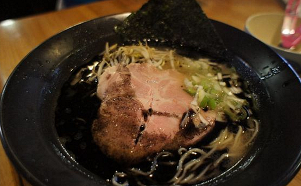 湯的顏色很特別是黑色,麵送上來時,啾啾還以為是墨魚麵拉