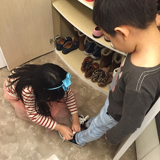 虽然乖乖才四岁,但在有强迫症的妈妈与姊姊耳濡目染之下,也努力着自己学习坚持完成许多事情。大约2个月前开始,他想学姐姐自己洗头,一开始(我)真的很痛苦,晚上已经够忙了,洗澡的时间还要延长,但提醒自己要沉住气,掐自己的手,忍住不插手!现在他们洗澡时会先准备好衣服,打开水,调整水温,冲湿,抹洗髮精,抹沐浴乳,冲乾淨,结束后呼叫妈妈来检查。姊弟两人轮流洗好,我只需要帮他们检查一分钟,让他们自己穿衣服。当时的不插手现在看来好值得。